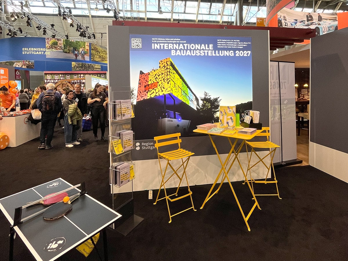 Wie bereits im vergangenen Jahr wird die IBA’27 zusammen mit den IBA’27 Friends wieder vom 17.01. bis 25.01.26 auf der Messe CMT in Stuttgart vertreten sein. Wir sind erneut Partner auf dem Stand des Stuttgart Marketings in Halle 6, Stand 6E61.