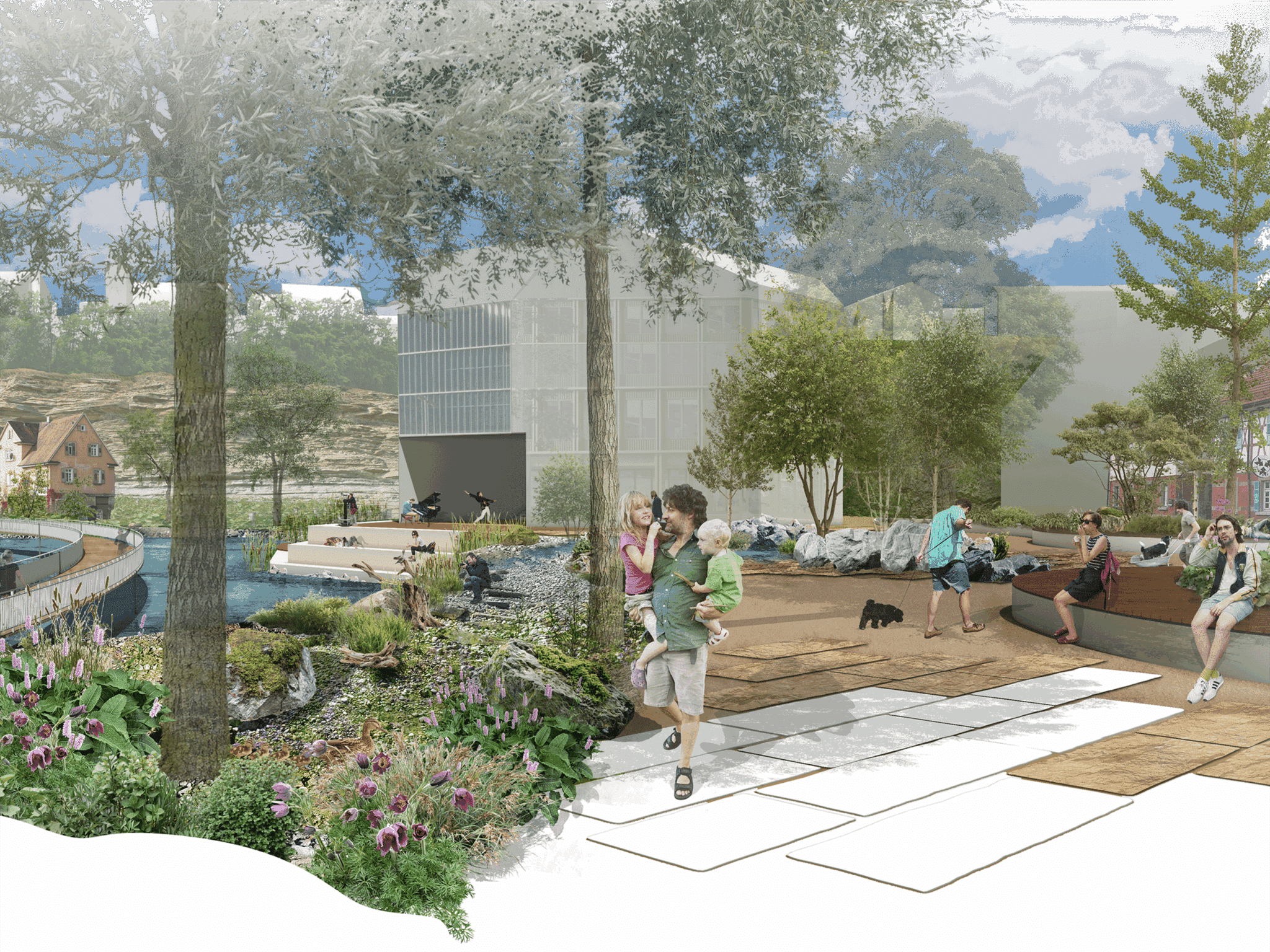 Studierende gestalten das IBA’27-Quartier »Backnang West« klimaresilient: Wasser wird als »blaues Nervensystem« für Stadt und Freiraum genutzt.