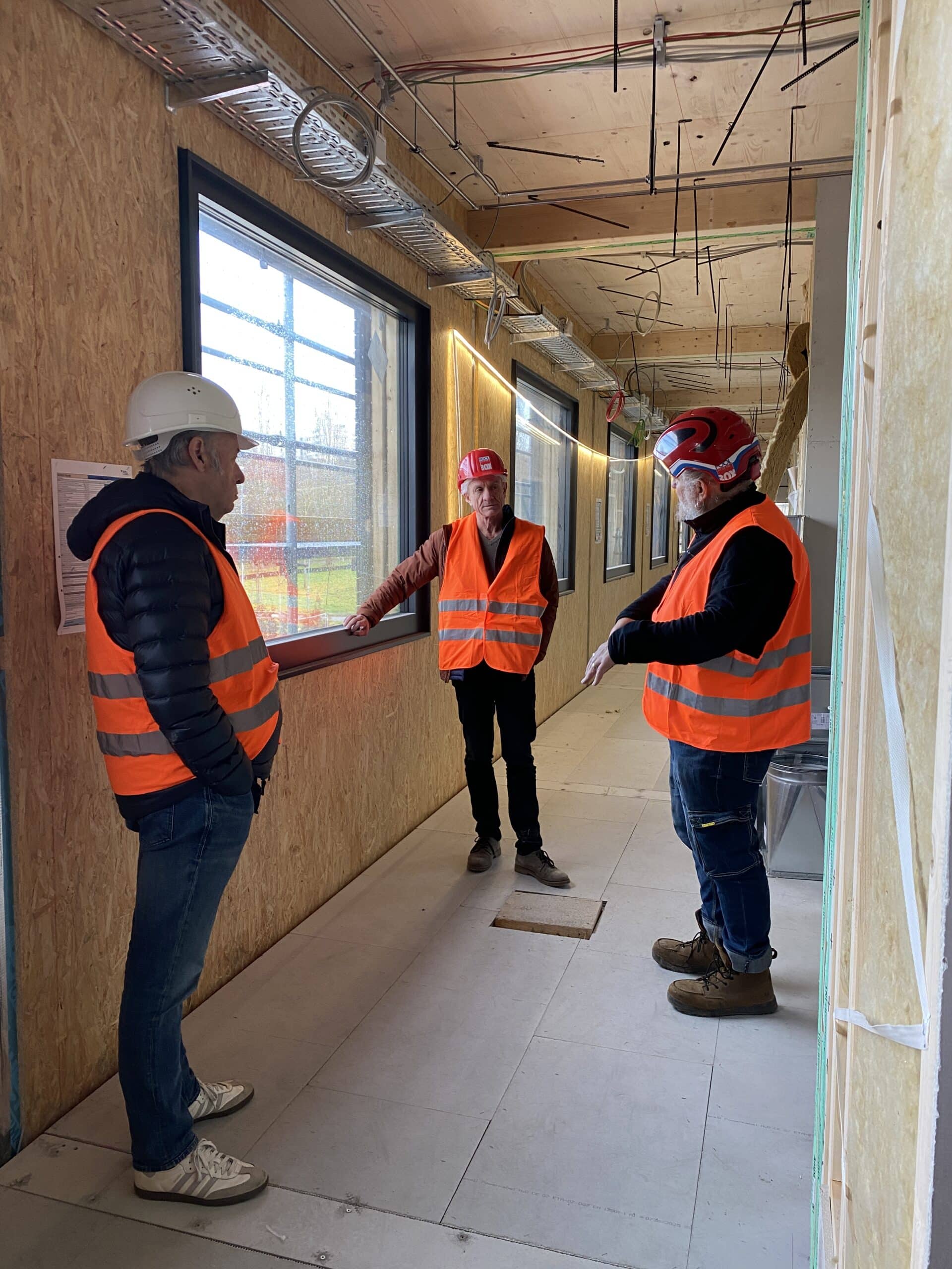 Bei einer Baustellenführung zeigten Joachim Maier von POOL out of the BOX, Ulrich Tillmann und Petra Steiner von 4a Architekten, Andreas Hofer und Tina Muhr (IBA’27) den raschen Baufortschritt, erläuterten die täglichen Erkenntnisse aus dem modularen Bauprozess und teilten die vielfältigen Learnings, die dieses Pilotprojekt jeden Tag liefert.