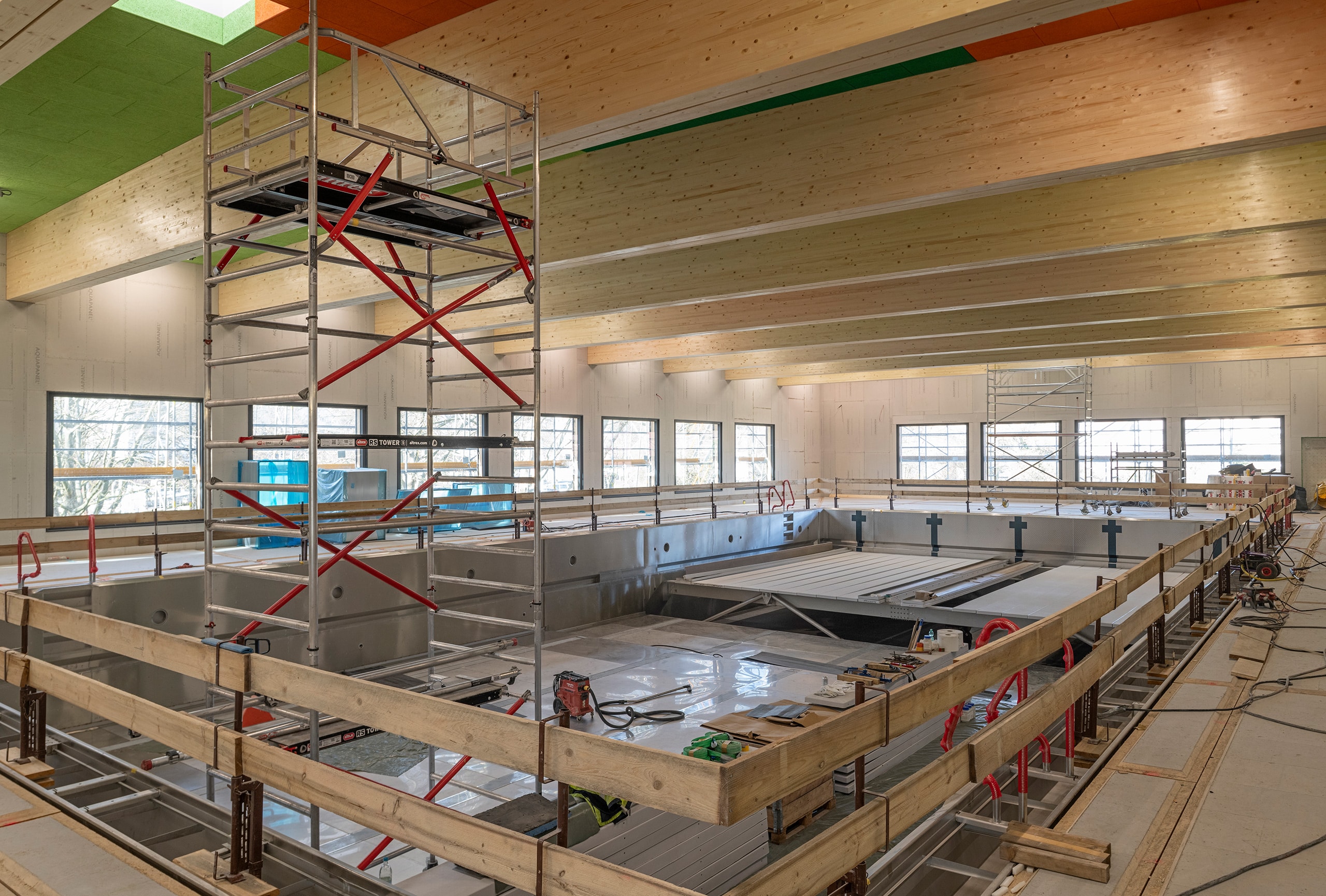 Das Hallenbad verfügt über ein 25-Meter-Becken mit fünf Bahnen sowie einen Bereich mit Hubboden und steht für den Schul-, Vereins- und öffentlichen Badebetrieb zur Verfügung. Bauherrin ist die Landeshauptstadt Stuttgart. Realisiert wird das Projekt durch die POOL out of the BOX GmbH als Totalübernehmerin gemeinsam mit 4a Architekten, Blumer Lehmann sowie weiteren Fachplanungsbüros.