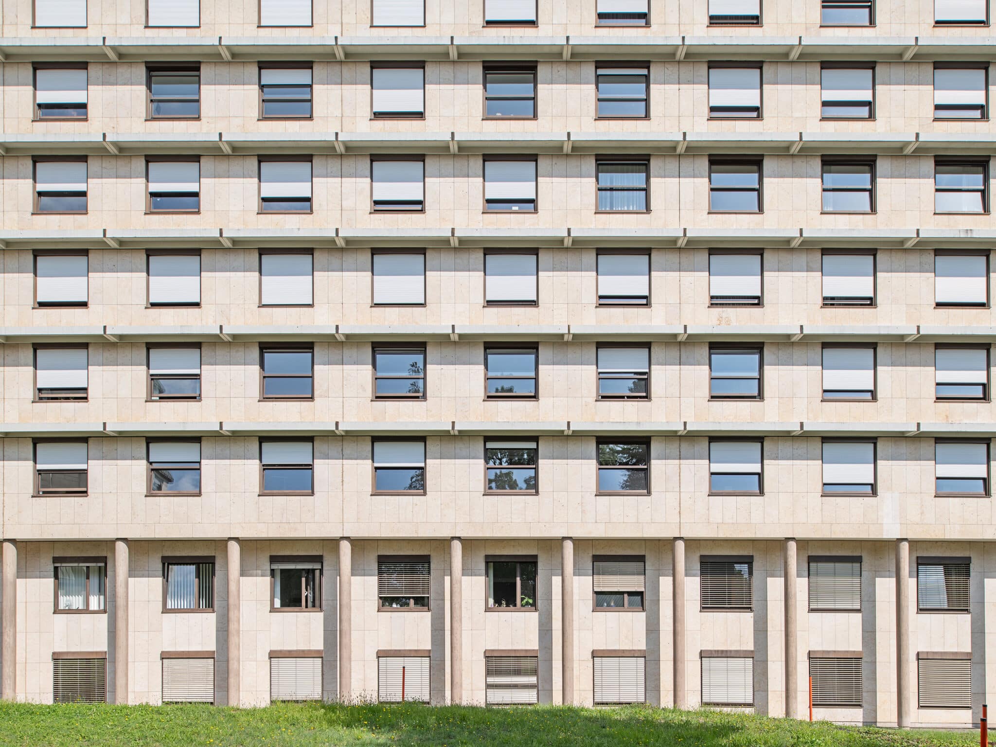 Einen Moment lang blicken Christen-Klenks Kollegen von der IBA’27 und die anwesenden Vertreter des Stadtplanungsamts andächtig in die Ferne – als wäre aus dem Dunst das künftige Stadtquartier aufgetaucht, das sie auf diesem privilegierten Flecken Land umsetzen möchten: Bereits in wenigen Jahren sollen auf dem acht Hektar großen Spitalareal gut 1500 Menschen wohnen, ihre Freizeit verbringen, sich mit dem Nötigsten versorgen, Kita und Schule besuchen oder in Co-Working-Spaces arbeiten können. Rund zwei Drittel des Gebäudebestands, davon vieles aus den 1960er- bis 1980er-Jahren, will die Stadt entsprechend umnutzen und durch Neubauten verdichten. Als eine der ersten Spitaltransformationen in diesem Maßstab dürfte das Projekt damit über die Region hinaus Vorbildcharakter haben.