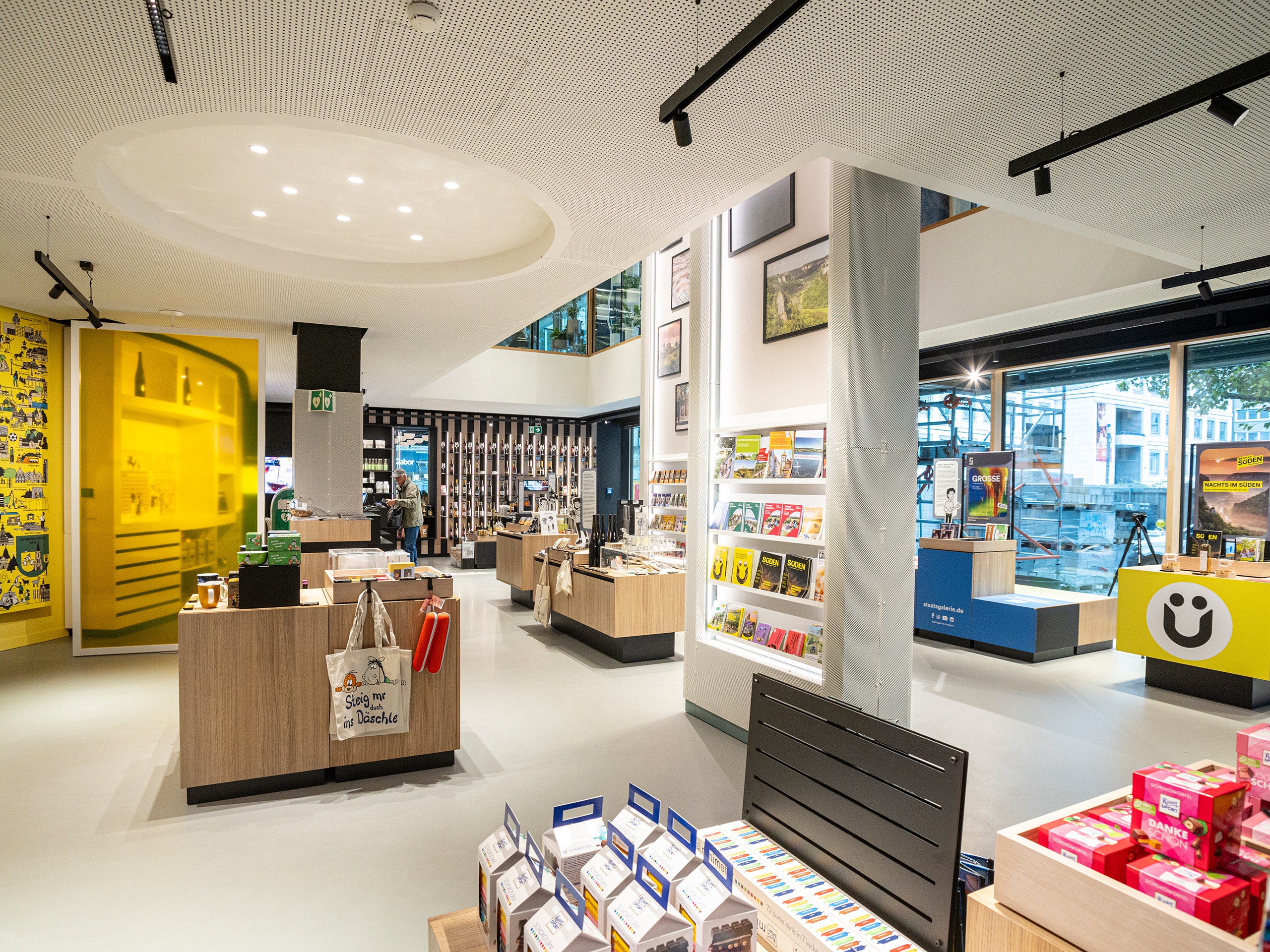 Das Erdgeschoss vereint Gastronomie mit dem i-Punkt, der die touristischen Angebote Stuttgarts, der Region und Baden-Württembergs präsentiert. Ergänzend erhalten Markenpartner eigene Ausstellungsflächen. In den oberen Stockwerken entstehen Konferenz- und Büroräume der Stuttgart-Marketing GmbH sowie der Tourismus-Marketing Baden-Württemberg GmbH. Das Dach wird zum öffentlich zugänglichen Dachgarten mit Bar.
