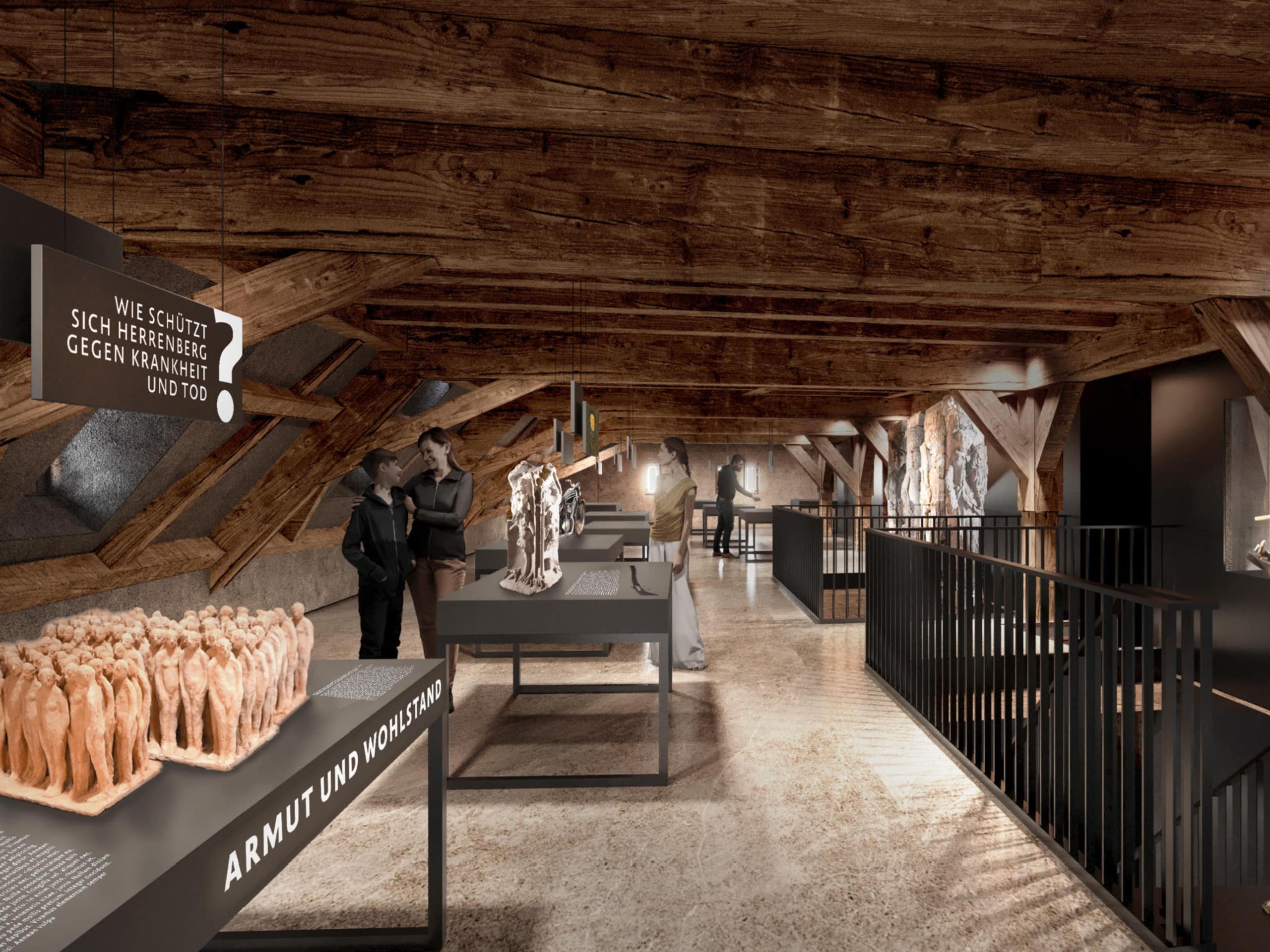 Mit der Sanierung des Fruchtkastens entsteht in Herrenberg ein offenes Multifunktionshaus für alle Generationen. Museum, Ausstellungsflächen, Café, Shop, Tourist-Info und Veranstaltungsräume werden flexibel in die historische Substanz integriert, barrierefrei erschlossen und technisch zeitgemäß ausgestattet. Die Sanierung hat das Stuttgarter Architekturbüro Atelier Brückner übernommen. Ziel ist ein lebendiger Ort für Begegnung, Bildung, Kultur und Austausch.