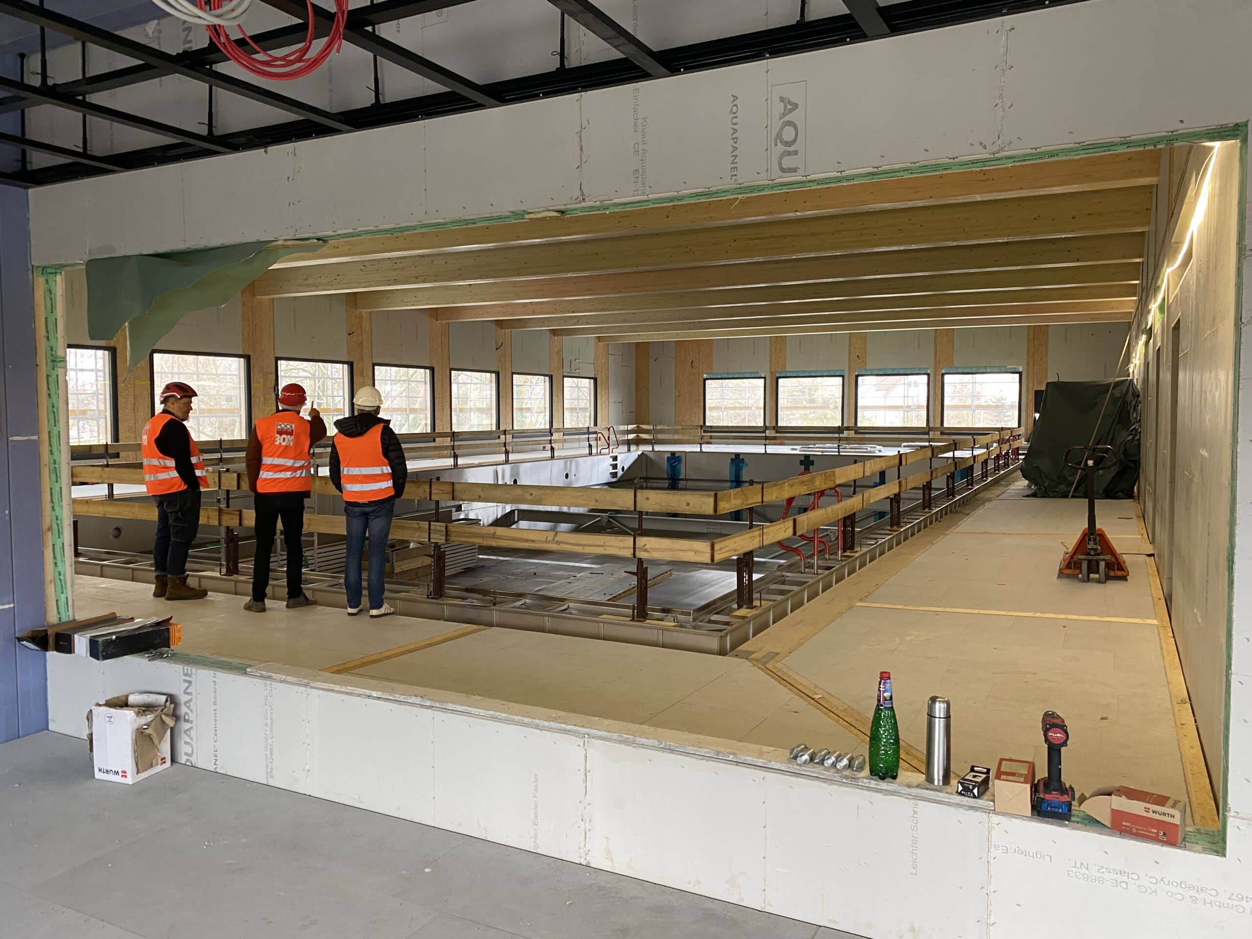Im Zuge des Abrisses und Neubaus des Hallenbads in Stuttgart-Zuffenhausen wurde ein Vergabeverfahren für ein Übergangshallenbad initiiert. Den Zuschlag erhielt im Juni 2024 die POOL out of the BOX GmbH. Das Projekt ist eine Weltpremiere: Es handelt sich um das erste Hallenbad in Holzmodulbauweise.
