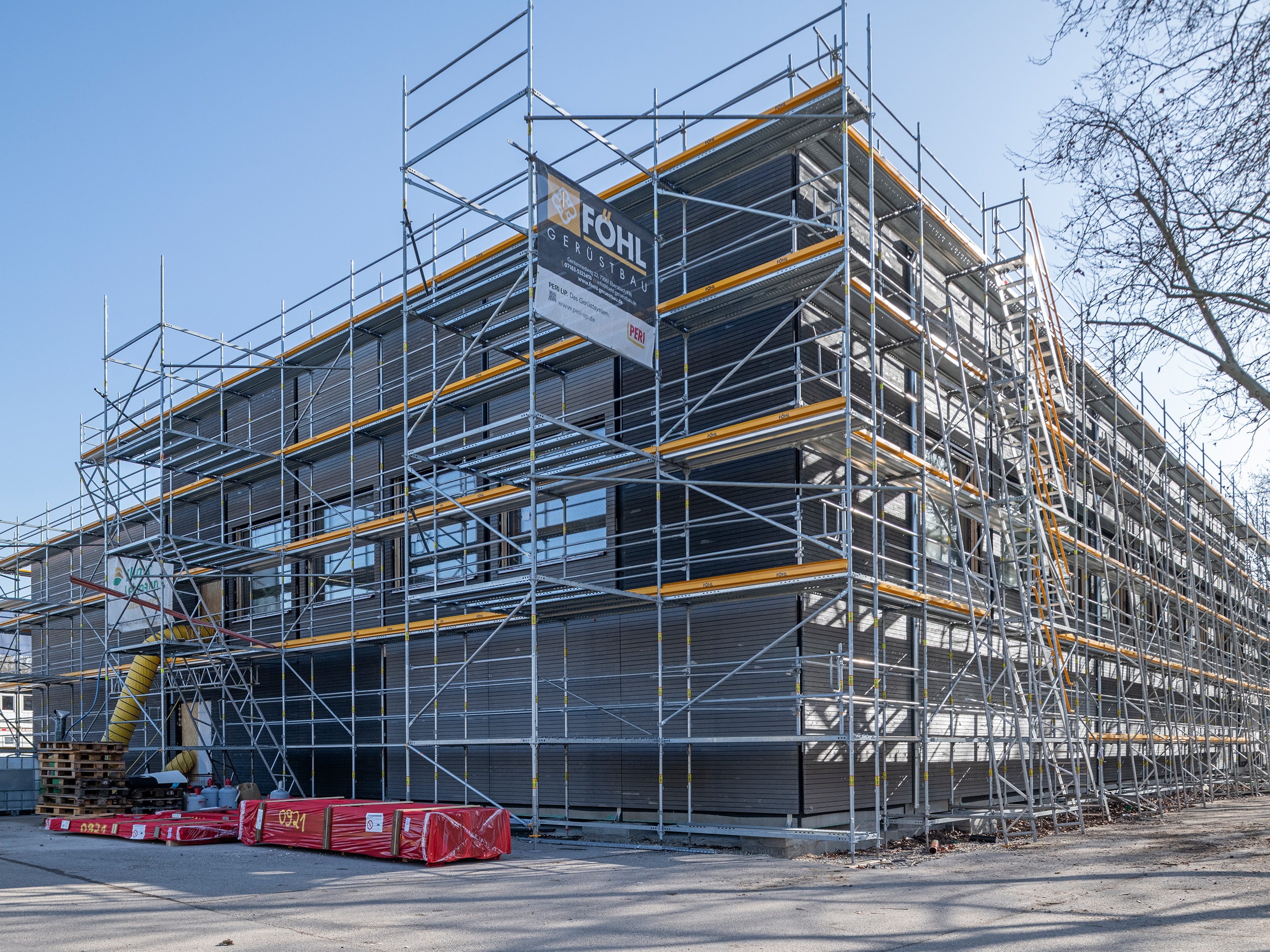 | Ablauf | 2025 Aufnahme als Vorhaben im IBA’27-Netz 2024 Verhandlungsverfahren mit Teilnahmewettbewerb: Pool out of the Box GmbH, Heidenheim (Generalübernehmer) mit 4a Architekten, Stuttgart (Planung) und Blumer Lehmann, Gossau/Schweiz (Modulbau) sowie verschiedene Fachplaner:innen 2026 Aufnahme als IBA’27 Projekt 2026 geplante Fertigstellung |